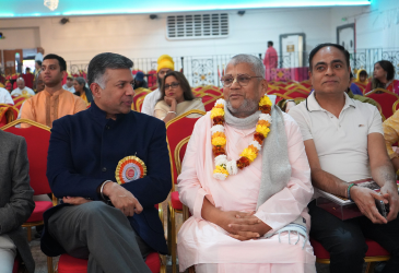The event was honored by the presence of Mr. Vikram Doraiswami, the Indian High Commissioner to the UK, who attended as the chief guest. Srila Guru Goswami Thakur (HDG BS Sannyasi Maharaj) and numerous devotees and guests gathered to chant the glories of Jagatguru Srila Prabhupad in soulful kirtanas.